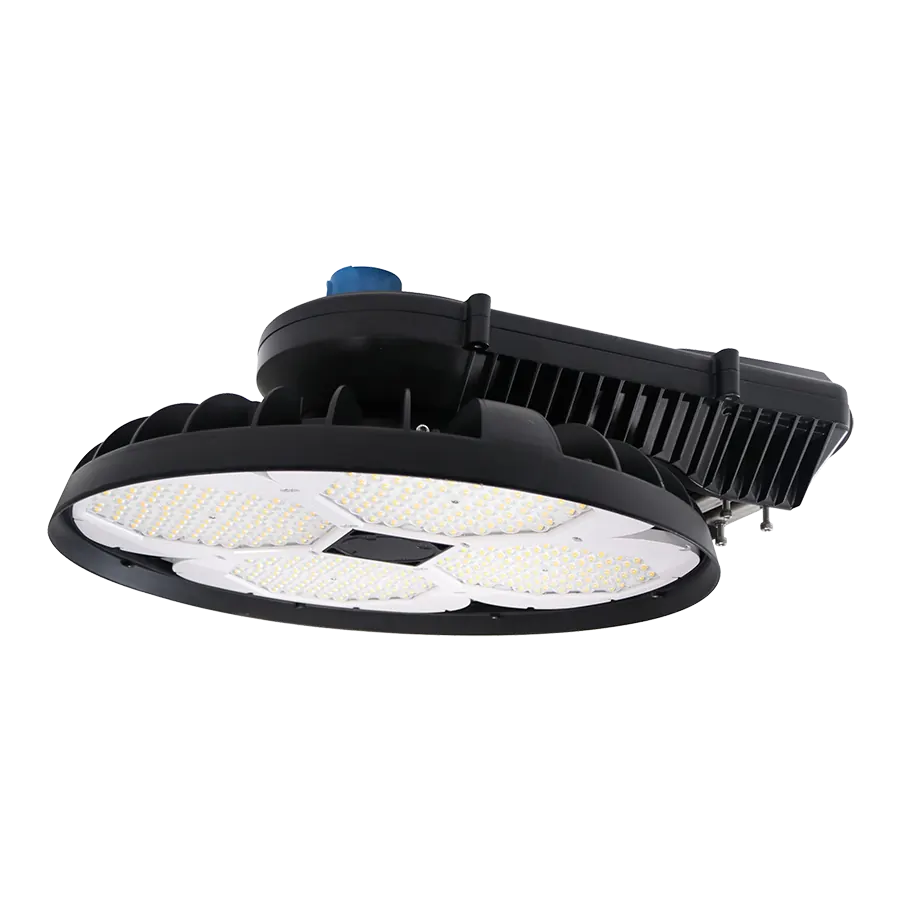 The Vulcan V2 High Mast Flood Light VUL2 Series continues the legacy of its predecessor with a different design tailored for larger-scale applications. Built with high-powered, corrosion-resistant die-cast aluminum housing, it ensures durability and reliable performance. The Vulcan V2 is perfect for illuminating large areas such as roadways, shipyards, container yards, hangars, aviation ramps and aprons, large prison areas, military bases, and industrial facilities. It is available with an optional shield (sold separately) and offers six wattage options and six CCT ranges to meet a variety of configuration needs. With high efficacy and precision-engineered polycarbonate lenses available in four optical ranges, the Vulcan V2 provides significant energy savings, long life, and excellent photometric performance at an affordable price. Additional add-ons, including controls, integrated or remote driver boxes, and tamper-proof hardware, ensure that the light fits the specific needs of your project while offering added protection. The fixture is backed by a limited 10-year
